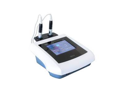 Cuenta con 2 cabezales, uno de 10mm de diámetro (con 24 puntos de contacto), que permite tratar áreas pequeñas y bien  localizadas ; otro cabezal de 16mm (con 72 puntos de contacto), que incrementa la densidad de puntos y por consecuencia la densidad de energía entregada al tejido.